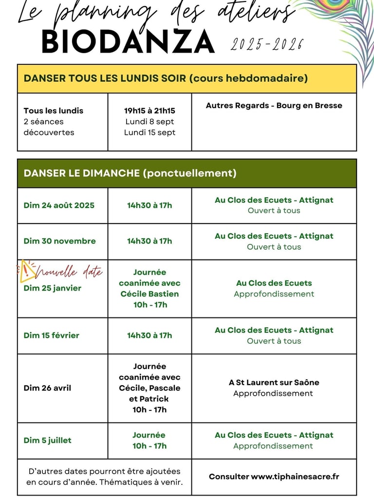 Ateliers ponctuels (Attignat): 20€/ atelier.